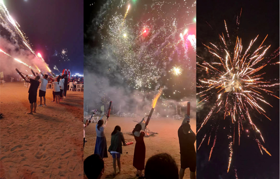 我公司于2023年(nián)6月(yuè)30日(rì)-7月(yuè)1日(rì)在東(dōng)戴河(hé)組織了(le)一(yī)場(chǎng)全φ員(yuán)參與的(de)夏日(rì)團建活動。現(xiàn)場(chǎng)住宿地(dì)點是(shì)東(dōng)戴河(hé)兆佳業(©yè)鉑域酒店(diàn)。活動內(nèi)容包括:室內(nèi)聚餐、海(hǎi)邊露天晚宴、篝火(huǒ)₹晚會(huì)以及煙(yān)花(huā)表演等。