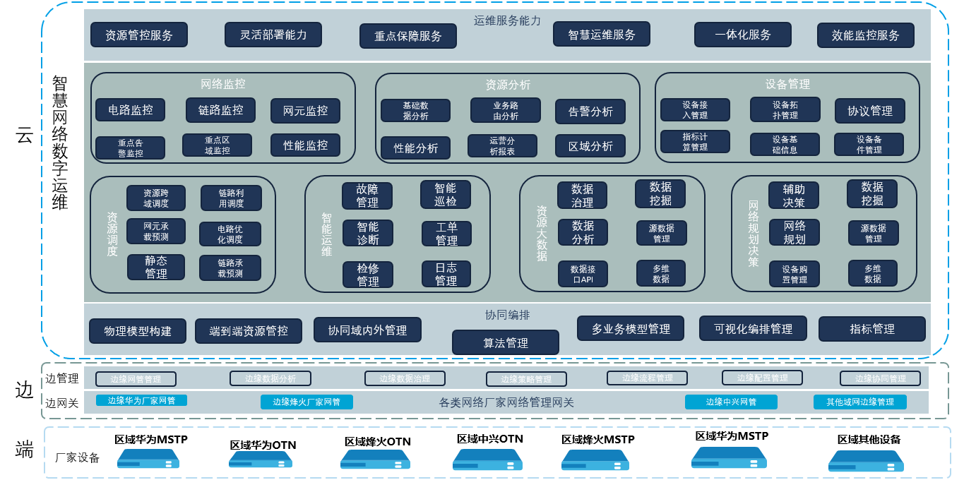 智慧綜合光(guāng)網絡數(shù)字化(huà)運維系統(簡稱:傳輸綜合網管)是(shì)實現(xiàn)跨域跨廠(chǎng)商業(yè)務端到(dào)端管理(lǐ✘)功能(néng),打造簡約、快(kuài)捷的(de)應用(yòng)能(néng)力,為(wèi)加快(kuài)整體(tǐ)業(yè)務數(↕shù)字化(huà)運維提供堅固基石,傳輸綜合網管支持統一(yī)拓撲管理(lǐ)、支持域內(nèi)、Ω域間(jiān)拓撲查看(kàn)、綜合管理(lǐ)域內(nèi)拓撲呈現(xiàn)及網元告警管理(lǐ),支持資源數(shù)據(網元、端口、鏈路(lù)等)搜索,并根據客戶安全級 别要(yào)求能(néng)夠滿足系統本身(shēn)業(yè)務安全、認證和(hé)訪問(wèn)控制(zhì)安全管理(lǐ),系統本身(shēn)支持南(nán)/北(běi)向π安全(AP),并提供WEB安全,可(kě)部署在高(gāo)安全級别操作(zuò)系統上(shàng),并能(néng)達到(dào)使用(yòng)數(shù)據庫的(de)安全¥,以及基礎安全防護能(néng)力,系統設計(jì)上(shàng)滿足高(gāo)可(kě)用(yòng)、高(gāo)可(kě)靠的(de)需求。為(wèi)建設智→慧綜合網絡數(shù)字化(huà)運維系統複雜(zá)網絡場(chǎng)景核心支撐能(néng)力、網絡運維便捷可(kě)視(shì)化(huà)能(néng)力、業≥(yè)務運維保障能(néng)力。