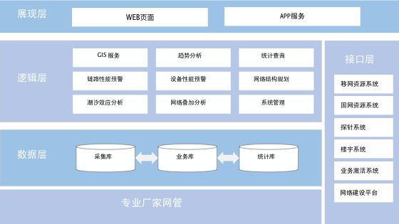 網絡性能(néng)綜合分(fēn)析平台主要(yào)是(shì)對(duì)運營商各類傳輸網性能(néng)與負荷情況進行(xín±g)呈現(xiàn)、統計(jì)與趨勢分(fēn)析。平台結合GIS模塊呈現(xiàn)網元、信源設備物(wù)∑理(lǐ)位置及性能(néng)信息,展現(xiàn)區(qū)局、彙聚區(qū)區(qū)域性信息↑;設備、業(yè)務鏈路(lù)的(de)性能(néng)趨勢展現(xiàn);結合大(dà)數(shù)據分(fēn)析引擎支持網絡秒(miǎo)級性能(néng)統計(jì)分(fēn€)析功能(néng),以及定制(zhì)化(huà)搜索引擎等。